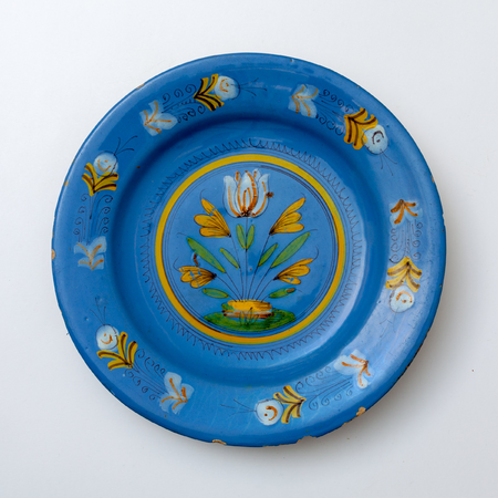 Picture: Dish, possibly Haarlem or Rotterdam, 1620-1640, tin- and lead-glazed earthenware, diameter 31.3 cm, Terra Verde Collection