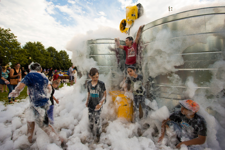 At certain times of day, a compressor will generate vast clusters of bubbles that will blow across the landscape and be shaped by the wind, blurring boundaries between the parkland and the art, and allowing the environment and people involved to formulate each unique experience. Hiorns places people at the centre of this interactive work by inviting visitors to engage with it as a place of liberation for both children and adults.