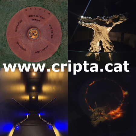 We will also enter the Crypt, dedicated to a thousand-year-old tree. It is a cylindrical iron space 8 m. in diameter, 11 m. high. On the outside there is only an iron circle 5 m. in diameter with the text of the poet Llu铆s Sol脿 "Tree of the world" in iron letters. In the middle of this circle is a 90 cm. glass eye that allows us to see the tree suspended with cables on the walls of the cylinder, while at the same time allowing the precise entrance of a light inside. The roots look to the sky and the branches to the earth. A space in which to feel the energy of a tree, where to be with it, where to experience the tragic vitalism, both physically and emotionally. To enter the darkness, to walk through the long tunnel, to feel time and space, slowly approaching towards the light, towards the sublime. A tribute to the World Tree.