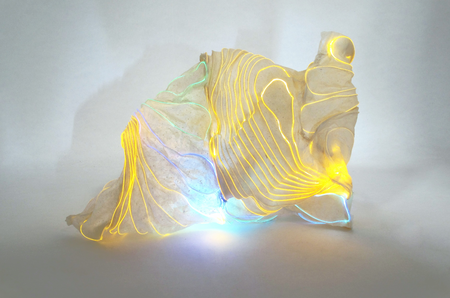 Seit über 30 Jahren arbeitet Helmut Frerick an der Entwicklung seiner Werkstoffe und Kompositionen seiner Lichtskulpturen. Nach vielen Jahren in Südfrankreich ist er mit seinem Atelier 2018 in die Vulkaneifel nach Hinterhausen umgezogen. bei Als ehemaliger klinischer Forscher ist die Erforschung einer der wichtigsten Aspekte seiner Arbeit. Dank seiner naturwissenschaftlichen und chemischen Kenntnisse hat Frerick sein eigenes Material, ein Pflanzenfaserpapier mit pergamentähnlichen Eigenschaften, entwickelt. Das skulpturale Schrumpfen seines Papiers verleiht ihm seine charakteristische Form und Festigkeit. Das Licht ist die andere Schlüsselkomponente seiner Arbeit. Durch die Verwendung von Strukturelementen aus Lichtleitfasern ist es ihm gelungen, Lichtgrafiken in seine Leuchtskulpturen einzubauen. Ohne Licht sind es Skulpturen. Durch das Licht und in einigen Realisationen lichtkinetische Veränderungen erfährt das Werk eine völlig neue Dimension. Licht aus: Ursprungszustand…