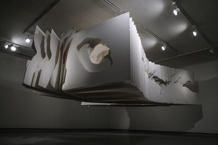 Den Gebilden inhärent ist eine architektonisch-strukturierte Konzeption, die sich grundsätzlich im Dialog mit dem Raum ergibt und in diesem aufgeht. Die ehemalige Industriehalle des Kunstraum Dornbirn bietet für die Arbeiten eine sehr reizvolle Umgebung. Das natürliche Licht, welches durch die großen Sprossenfenster die Stimmung im Inneren gestaltet, wird die papiernen Oberflächen und skulpturalen Körper im Tagesverlauf in ein spannendes, sich ständig veränderndes Wechselverhältnis mit dem Raum treten lassen.