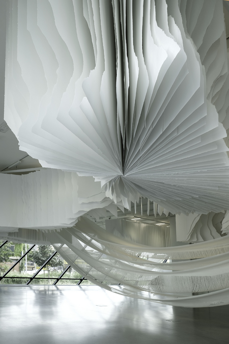 Angela Glajcars Werke sind geprägt von der scheinbaren Leichtigkeit und poetisch anmutenden Plastizität ihres bevorzugten Werkstoffs: Die deutsche Künstlerin entwirft Wandobjekte, kleinere sowie freistehende großformatige Skulpturen und monumentale Installationen aus Papier.