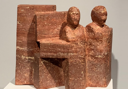 Als Bildhauer hat Hans-J. Müller (geb. 1952) eine Handschrift entwickelt, die aus den geometrischen Sockeln seiner Plastiken menschliche Figuren emporwachsen lässt.