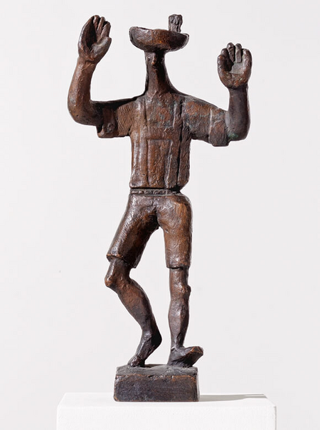 Nippes, Briefbeschwerer oder Staubfänger – piefige Überbleibsel aus bürgerlichen Salons: Die Vorurteile gegenüber Klein(st)plastik sind größer als ihr Maß. Dass sie im Fall von Gerhard Marcks’ (1889–1981) Figuren jedoch unbegründet sind, wusste schon Lyonel Feininger (1871–1956). 1952 ermutigte er seinen Freund sogar im kleinen Format zu arbeiten: »Laß nicht davon ab, in Zwischenpausen Deine unerhört vitale und monumentale Kleinplastik weiterzumachen«. Feininger erkannte, dass der Einsatz des »Monumentalen« als bildhauerisches Instrument auch im Kleinen zu den Eigenschaften von Marcks’ Bildwerken gehörte. Damit grenzt sich der Bildhauer hier deutlich von dem ab, was Betrachter*innen mit »Kleinplastik« assoziieren und zeigt, dass diese Arbeiten genauso wenig niedlich sind, wie seine großen.