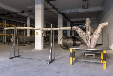 Together with a selection of works from the last seven years, the exhibition Vascular is structured around a new and extraordinary production in which forms, gestures and recurring questions converge in many of Crespo's series. Examples of this can be the sculptural or even architectural use of photographic images, converted into large floor prints; or the presentation of supports from industrial production or construction, such as work tables, stairs or lifting platforms, which serve as the basis for the proliferation of vegetable, tubular and cylindrical forms in space. Vascular not only wants to indicate the internal communication within each piece of June Crespo, but also suggests transmissions between all the works included in the project. These act as communicating vessels and capillary networks both at the level of the materials and the scarifications and marks that Crespo makes emerge on the surface of the sculpture.