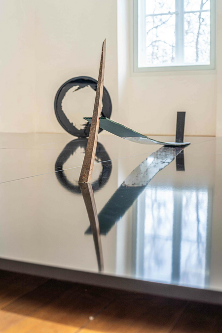 In the current exhibition, the St. Blasien-born artist is showing works from 1987 and from the last two years. In both periods, Klessinger incorporated reflective materials as a sculptural element into his works. This ambivalence, of “digressing” into unfamiliar territory and being thrown back on one’s own point of view, is an essential characteristic of Klessinger’s work as a sculptor and draughtsman.
