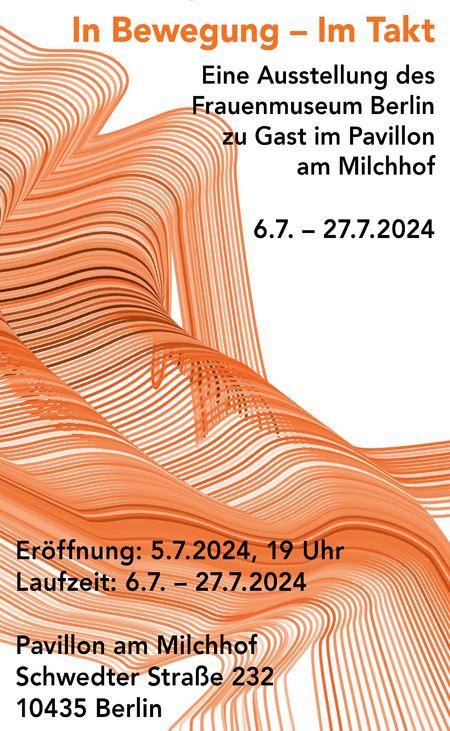 Zum dritten Mal erkundet das Künstlerinnennetzwerk Frauenmuseum Berlin das Themenfeld Wandern. Nach Ausstellungen im Kunstverein Ebersberg (2021) und verschiedenen Orten in Neuruppin (2022) setzen in diesem Jahr 25 Künstlerinnen des Frauenmuseum Berlin die Reihe mit der Ausstellung In Bewegung – im Takt im Pavillon am Milchhof fort. Wie der Ausstellungstitel verrät, wird die Bewegung untersucht. Beim Gehen verbinden sich die physischen Bewegungen mit dem gedanklichen Wandern und durch den Rhythmus des Gehens werden die Konzentration und das Gehirn angeregt. Dies ist nicht nur eine Erkenntnis der heutigen Neurowissenschaft. Bereits Philosophen der Antike waren davon überzeugt, dass Gehen das Denken fördert. Es öffnet das Bewusstsein für zufällige Entdeckungen und Begegnungen. Wie jede Stadt durch einen eigenen Rhythmus und Klang geprägt ist, so sind auch die gezeigten Kunstwerke in der Ausstellung In Bewegung – im Takt von großer Vielfalt. Die Künstlerinnen arbeiten mit unterschiedlichen Techniken, Medien und Materialien – von Malerei, Zeichnung und Skulptur über Videoarbeiten bis hin zu Installationen und Performances. Der Rhythmusgedanke zieht sich durch die Konzeption der Ausstellung und wird auch anhand der Anordnung der Werke im Raum spürbar. Gleichförmige, sich wiederholende Elemente stoßen auf Unregelmäßigkeiten. Wie wir beim Wandern auf neue Impulse und Entdeckungen in unserer Um- und Gedankenwelt stoßen – sogar, wenn Ziel und Weg vertraut sind – führt auch die Ausstellung in das Unbekannte im Bekannten.