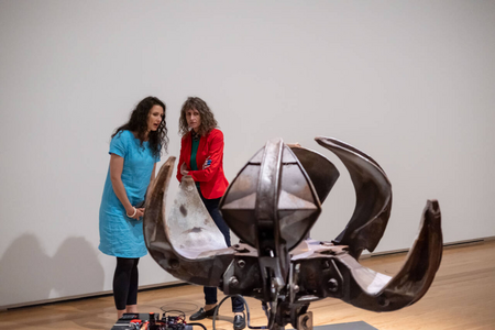 The SCHIRN presents a major solo exhibition by the artist Selma Selman (*1991). Only a few years ago, she boldly and confidently entered into the spotlight of the international art world, describing herself as “the most dangerous woman in the world.” Together with her family, Selman disassembles former status symbols like Mercedes-Benz cars in front of an audience, in order to acquire the few precious metals that are still usable. The spoken performances by this artist with a Roma background are usually loud, for she gives expression to anger and her urge to reverse power relationships. Selman’s art describes impressively, and through a variety of media, experiences of discrimination, violence, sexism, and patriarchy. In a variety of media, Selman’s art explores experiences of discrimination, violence, sexism, and patriarchy in a striking way. Her multilayered work comprises performances, sculptures, paintings on car parts and scrap metal, drawings, and video. At the SCHIRN, the artist presents prints, small sculptural works made from precious metals, and two performances that pick up on central themes of her oeuvre, as well as two newly created works. The installation “Flowers of Life” (2024), made from multipronged grabs, gestures to her family’s livelihood, which involves collecting and reselling scrap metal. The film “Crossing the Blue Bridge” (2024) is based on her mother’s memories of experiences in her hometown of Bihać during the Bosnian War (1992–1995). Selman takes these family experiences as a point of departure to situate herself as a feminist and activist artist who now campaigns internationally for her community. Selma Selman was born in Bosnia and Herzegovina, and lives and works in New York, Amsterdam, and Bihać.
