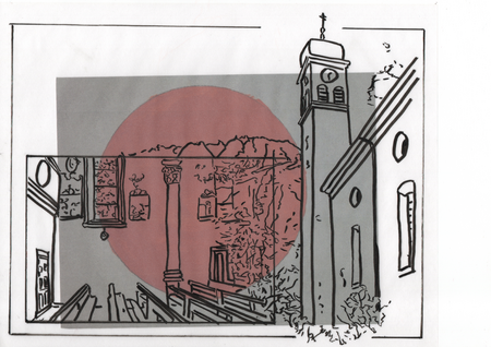 turm und lädt dazu ein, die Kirche von innen zu besichtigen. Die Werke in leuchtenden