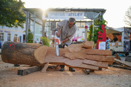 In front of the audience the participants are using their way of artistic expression to create unique snap-shots and turn them into life. The results are punchy objects made from trunk wood and razor-sharp punchlines on paper. The most fascinating part: everthing happens close to the action, live and on par with artists and audience. In between the chippings, there's always time for a little chit-chat in a calm atmosphere. Do not miss the opportunity at the SPREEWALDATELIER 2025 where you can witness how logs turn into sculptures!