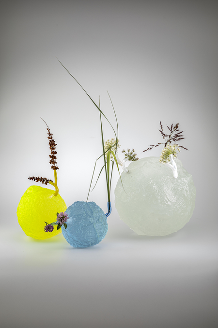 Stemming from each sculpture are delicate branches created and lamp blown by Maestro Vittorio Costantini, a Burano island native deeply attached to the beauty of Venice, the lagoon and to the abundance and variety of flowers, birds, butterflies, insects and marine creatures they harbour. His meticulous and exquisite creations, delicate and precious microcosms, have garnered him widespread recognition. The wild flowers in the Baumwelten are handpicked by Janine on the island of St Erasmo, a short boat ride away, to further underline the beauty of nature’s interconnectivity.
