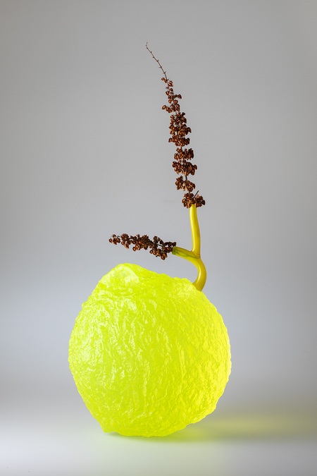 Baumwelten are borne of negative impressions of three different tree barks: a Prunus Armeniaca from Janine’s garden on the ancient Appia Antica, Rome, cast in yellow, the colour of its flower’s pistil; Quercus Suber, the cork oak, also from the Via Appia Antica, in sky blue; and Euonymus Japonicus from her garden in Venice, where its shade falls on the patio like a protective hat, hence its nickname, 'Berretto del prete'. This sculpture is cast in a candid white reminiscent of the evergreen tree’s beautiful white flowers, adorned in autumn by orange berry-sized fruits.