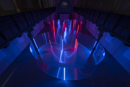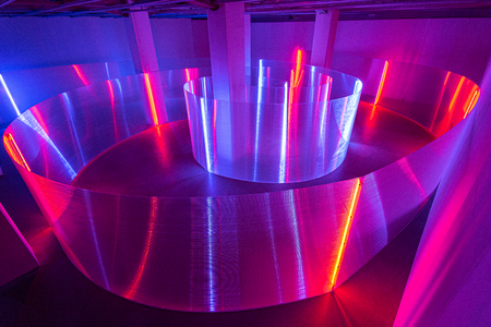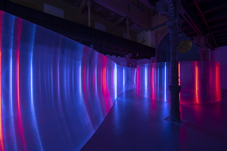 At the core of Korbička's work is the use of advanced technological materials and his ability to evoke strong emotional reactions. The exhibition impacts viewers through a dynamic flow of light and color that envelops them, transforming the large gallery space into a visual and sensory experience. Visitors are invited to explore the vibrant interplay of illuminated and dispersed structures, experiencing a unique fusion of color that creates virtual imagery and a parallel space. As they navigate through the "Labyrinth," they become integral to the artwork itself, enriching their imagination and expanding their perceptual boundaries.