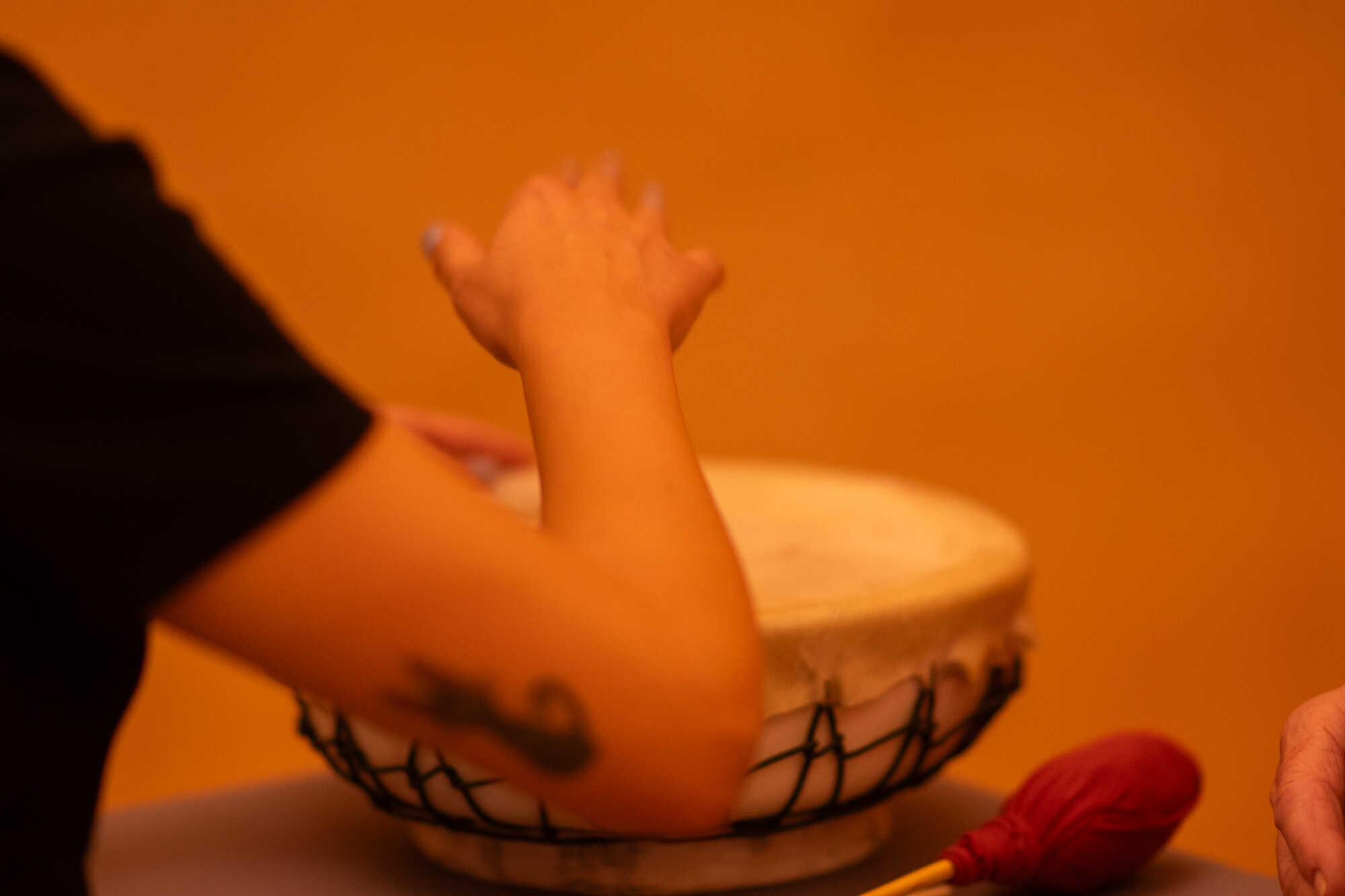 exhibition: triggering aesthetic pleasure through the haptic exploration of her pieces and provoking surprise and fun by extracting sounds from something seemingly mute, such as a rock. On the one hand, the sense of touch involves volition and desire, thus enhancing closeness and intimacy with the artwork. At a time when artificial intelligence is replacing so many human tasks, tactile activity is something that AI cannot do for us: touch allows us a direct, immediate connection with art, without intermediaries.