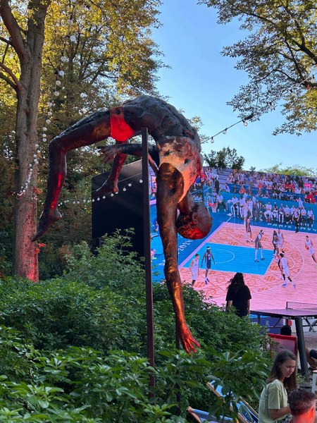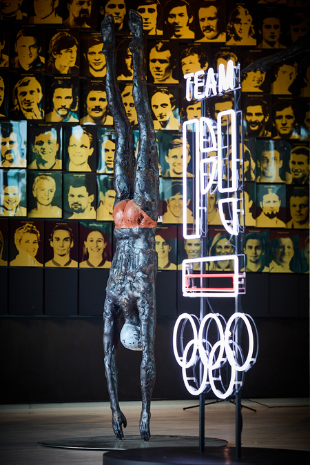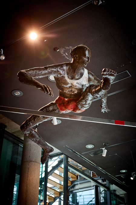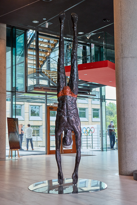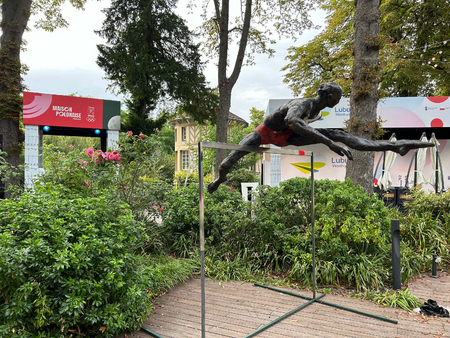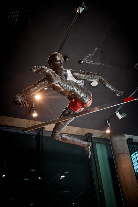 At the headquarters of the Polish Olympic Committee, a number of balancing sculptures from the Athletes - Sportsmen series are presented: Too High Bar, The Last Hurdle, Deep Plunge. All the sculptures were co-financed as part of the program Sculpture in Public Space for the Independent, carried out by the Centre of Polish Sculpture in Orońsko - Deep Plunge in 2023 and Too High Bar and The Last Hurdle now in 2025.