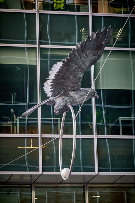 The focal point of his presentation is The Pearl's Guardian- a falcon balancing on a ring with a pearl. The sculpture symbolically combines the tradition of pearl diving with the modern spirit of Dubai, which is developing at breakneck speed.