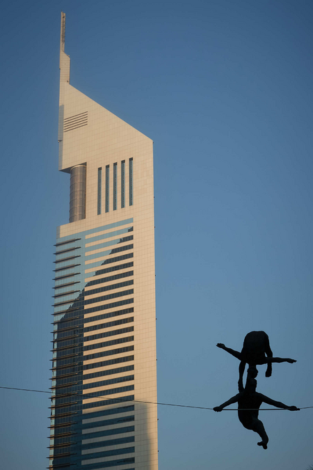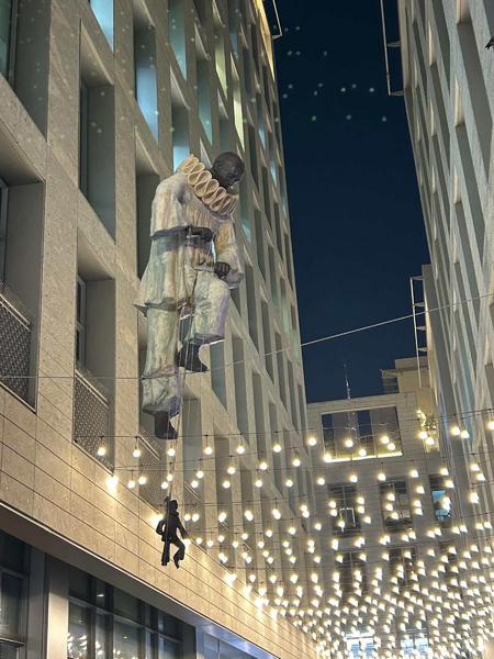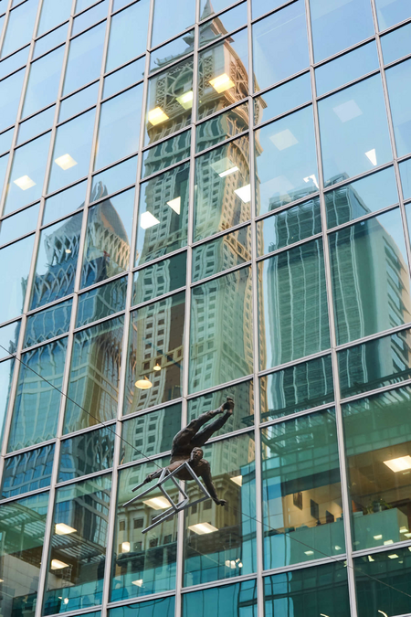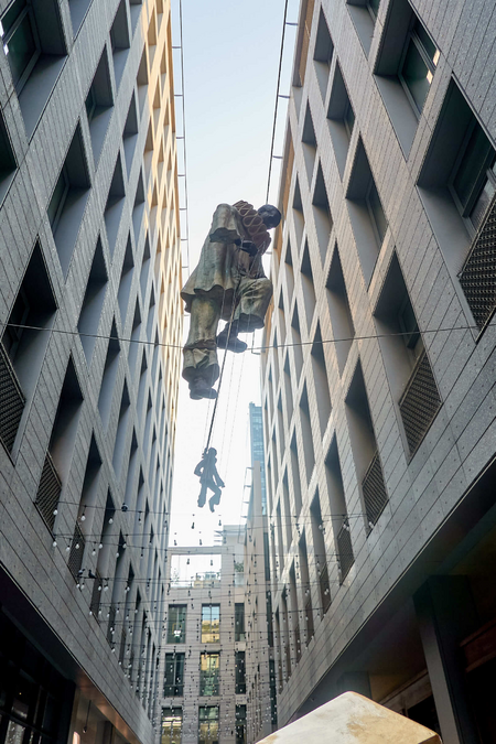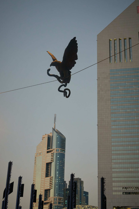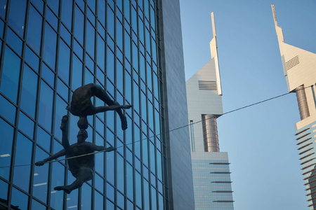 The exhibition also included works such as Duo, Entangled and Acrobat with a Chair, exploring interpersonal relationships, tensions and dependencies, as well as Deep Plunge, which, together with Entangled, was placed in the semicircular waters surrounding the DIFC Main Gate.