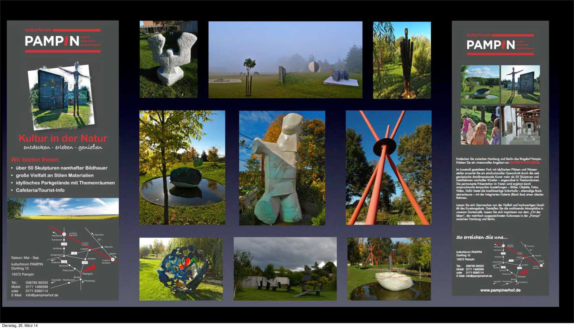 Entdecken Sie zwischen Hamburg und Berlin das kulturforum Pampin mit Skulpturenpark, Kulturhalle und Bilder-/Fotogalerien.