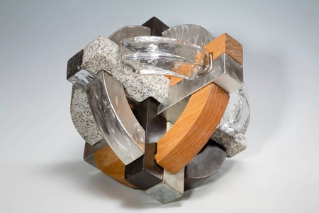 Title, top: Johannes Stumm, "Twelve" glass, bronze, stainless steel, limestone, granite, 54 x 54 x 54 cm