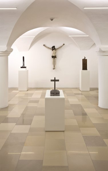 Fritz Koenig. Cult Image. From Work and Collection The Sculpture Museum in the Hofberg as a guest at the Cistercian Abbey of Seligenthal Since 21 June 2013, the permanent exhibition Fritz Koenig. Cult Image. From his work and collection has been open. The sculptor Fritz Koenig, born in 1924, is an artist, collector and man deeply rooted in the old Bavarian world of faith. Since the beginnings of his artistic work in the late 1940s, he has created a wealth of sacred works, either on official commission or on his own initiative. This engagement with iconographic traditions finds its counterpart in the sculptor's rich art and cultural history collections: the central themes of not only Christian devotion and memoria can be found in works of art and artefacts on many levels. The temporary home in the cloister of the cloister area of Seligenthal Monastery for selected artefacts from the oeuvre and collection of the Fritz and Maria Koenig Foundation is a great exhibition opportunity, a precious gift to the work. In this special place, the works experience a tangible spiritual charge. Public guided tours