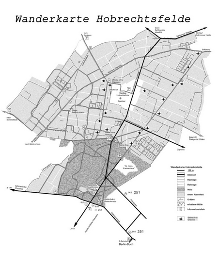 In den ehemaligen Rieselfeldern und im Hobrechtswald Berlin-Buch zum Barnim sehen Sie auf 21 km Wanderwegen 120 Skulpturen der Skulpturenlinie Steine ohne Grenzen. Die Skulpturen entstanden während der Symposien im Bucher Forst seit dem Jahr 2001, insgesamt stehen dort Skulpturen aus sechs Symposien.