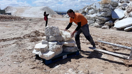 Unfortunately, the alabaster quarry of Azaila could not be visited as planned by Beatriz Carbonell Ferrer due to heavy rainfall. However, at a factory in La Puebla de Hijar, the participants were able to observe the processing of the stone before it was marketed. That was quite a highlight for the sculptors.