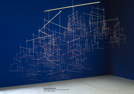 Knopp Ferro, Linienschiff Kap 22:26, 2016, Stainless steel, sticks, powder coating red, 315 x 390 x 245 cm
