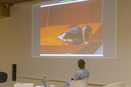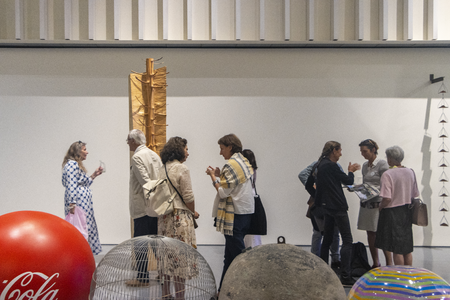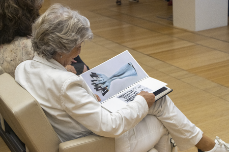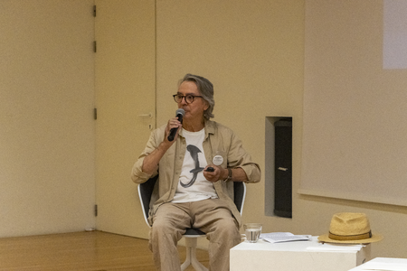 At 9.30 sharp, the big white sliding door of the Centre Pompidou Málaga opens. The members of the organisational team, Yke Prins, Maria Garcia de Pedro, and Zeynep Ece Sahin Korkan, welcome us. We are now right below the colourful glass cube, the eye-catcher of the museum. On our way to the auditorium, we pass through cool, spacious rooms.