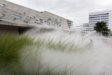 Mist. It is these very finest droplets of water, so familiar to us from everyday life, that are Judith Mann's working material. Alongside electromagnetism, lightning, and other natural phenomena, she draws the viewers of her work closer to this most delicate form of rain and makes the mist a tangible experience. In places and at times when no grey cloud would naturally touch the ground.