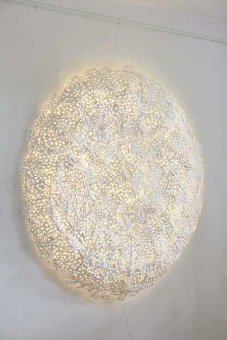 Verena Friedrich: Contemplation. Light Object. Wire, tyvek, perforated, LED, ø 160 cm, 2017, Det.