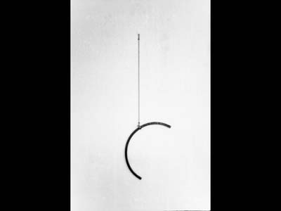 "The sculptures happen; they are a system," [„Tätige Form“ Film by Gabi Heleen Bollinger 2018, 1:03 min] the artist emphasised almost sixty years ago at the beginning of his career. The sculptures are mostly moveable and, in their mobility, agility, or movement, open up their own space of opportunity for coming into action. Or to express it in the words of the artist: "Form is experienced here as a form that evolves and as a form that has an effect." [ibid.] The earliest works on display in this exhibition space include the unfired clay vase (Werkverzeichnis (WVZ) 004/599, 1968) and a work made of spring steel, which looks like a "lasso" in its perforated steel frame (o. T., WVZ 169/174, 1978). The cast steel in polystyrene (o. T. WVZ 224/483, 1981) fascinates with its lightness, as does the Bewegliche Dreieck (Moveable Triangle, WVZ 522/575, 2015). Anemone Vostell directs the conversation to a much more massive flame-cut work made of steel (o. T., 161/387, 1983).