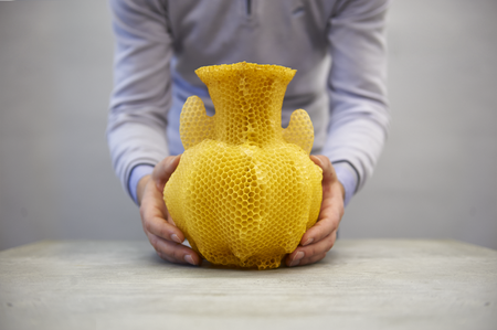 “The statue of Nefertiti that I showed this summer in Kunstmuseum Den Haag was a kind of breakthrough. The framework is like a latticework, a scaffolding for the bees to build their skin around, which becomes a honeycomb. I designed it knowing what they liked as a form. They love hanging in the trees and bushes with these intertwined branch structures. It’s exactly like what Nefertiti looks like when it is a naked 3D printed form; I designed it to look like branches of a bush.”