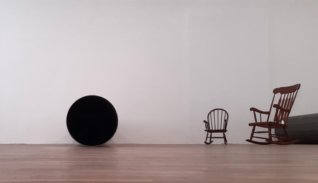 As is the case with the threads of themes dealt with, Tieu's choice of forms of representation and reproduction is also multifaceted. Flatware, found objects, everyday objects, and pieces of furniture are finely interwoven with projection and sound. In doing so, the artist succeeds in creating minimalist spaces, which in turn grow into independent sculptural structures by means of sound.